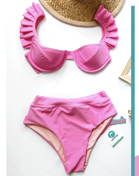 Conjunto de top bandeau con lazo en la espalda de San Marteen y braguita con volantes Coro II