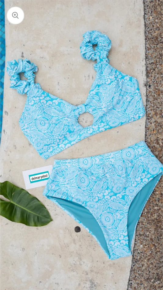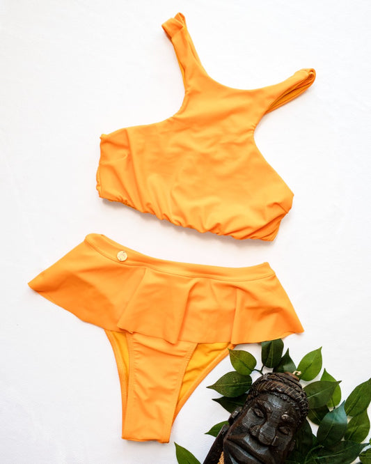 Conjunto de top halter reversible Tortola y braguita fruncida Acandi