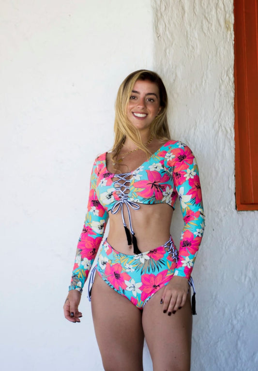 Conjunto de bikini con top de surf de manga larga y braguita de acandi