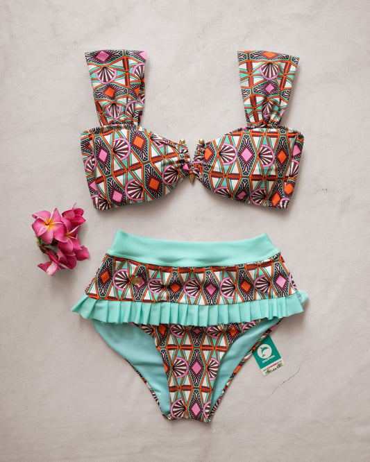 Traje de baño de dos piezas Piragua/Arena Dorada con parte inferior reversible