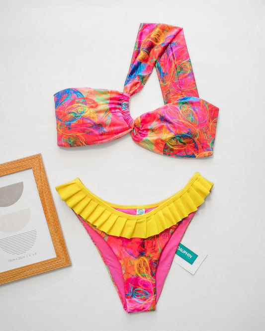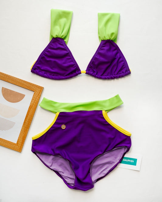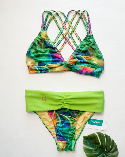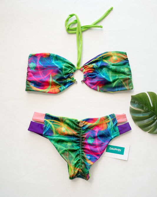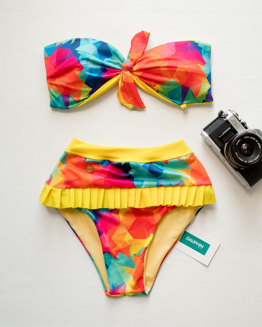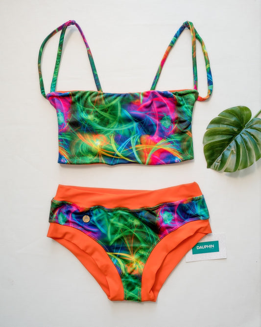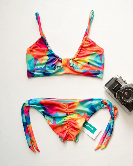 Conjunto de bikini geométrico vibrante con top Monserrat y braguita Caura
