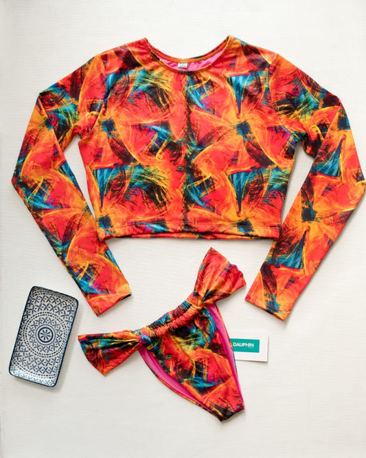 Alto Velo Radiant Swirls: Traje de baño de una pieza de manga larga con estampado vibrante