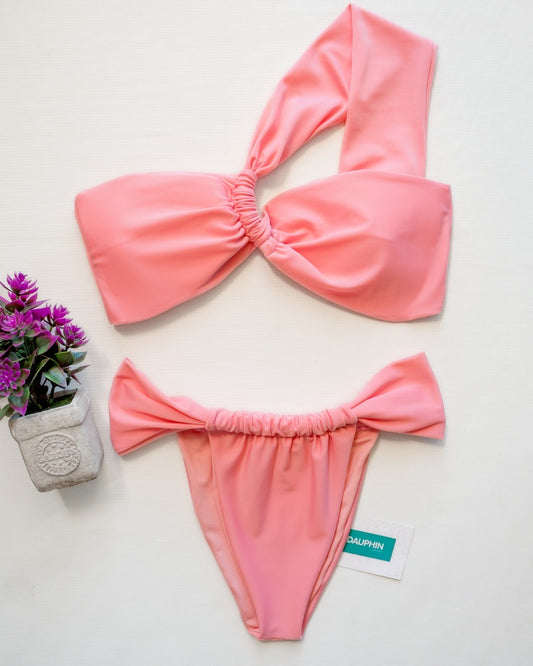 Conjunto de bikini San Marteen con lazo en la espalda y braguita Fiji a juego en color rosa guayaba