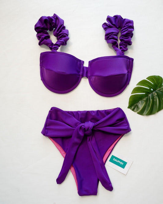 Conjunto de bikini con hombros descubiertos violeta/maldiva