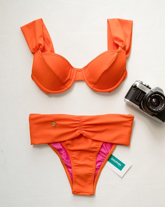Conjunto de top halter reversible Tortola y braguita fruncida Acandi